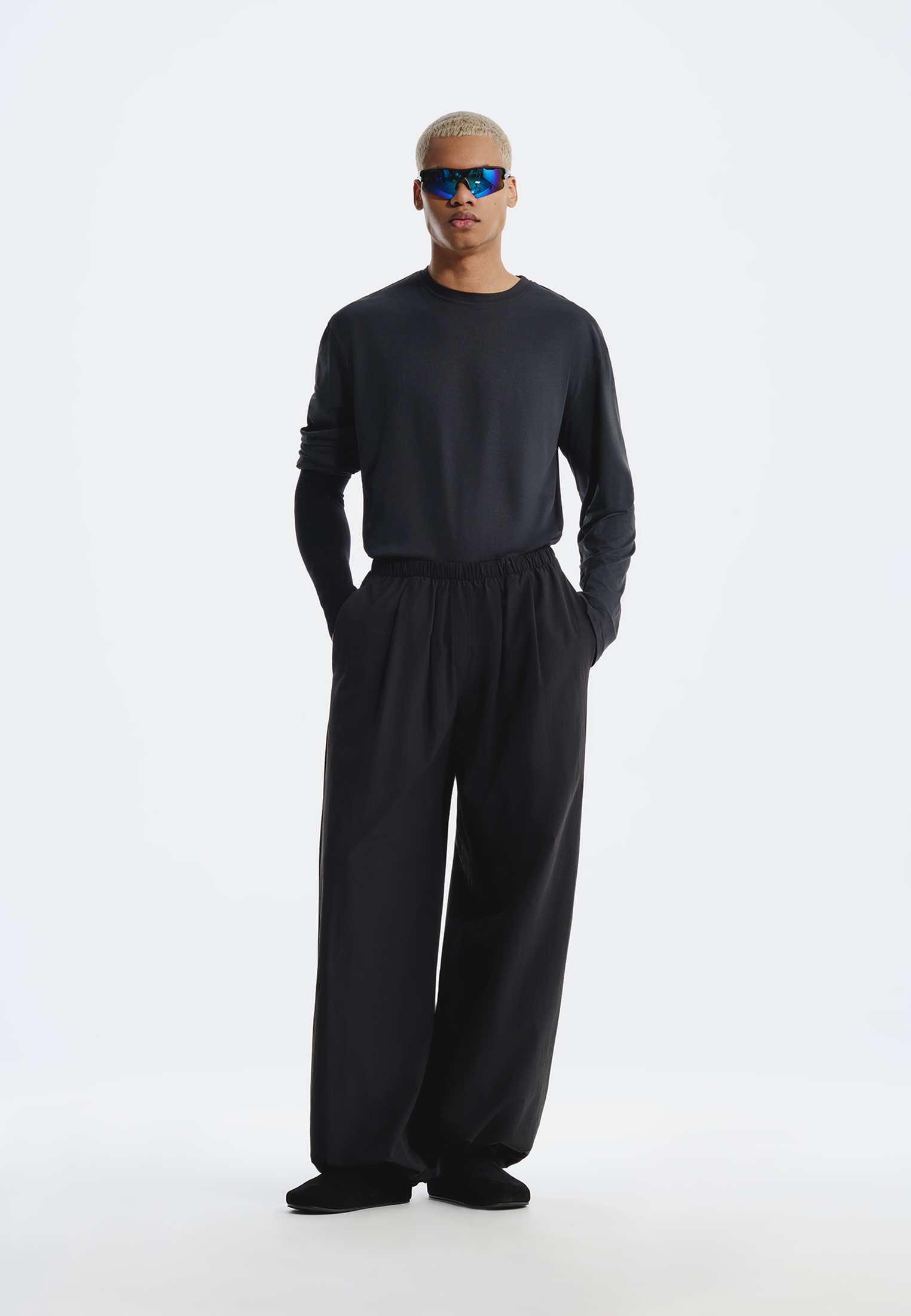 Широкие мужские брюки выполнены из плотного материала с технологией on guard, которая помогает защищать от ветра, влаги и загрязнений. Оверсайз-крой и утяжки по низу позволяют носить модель в прямом виде или фиксировать низ по фигуре, меняя посадку под ситуацию; брюки подходят для ежедневного ритма, прогулок и городского лайфстайла.