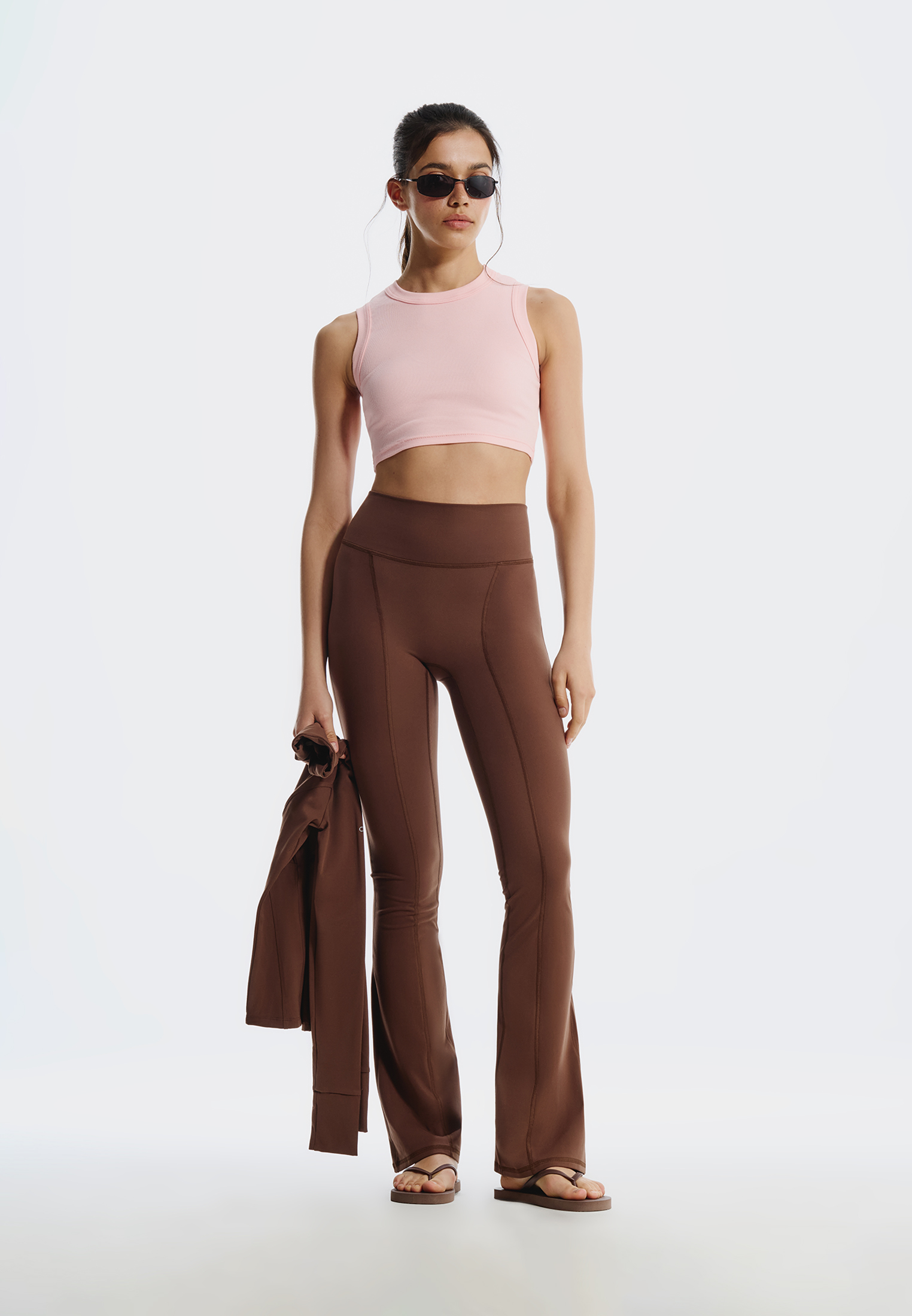 Леггинсы полной длины выполнены из мягкого эластичного материала с технологией on softkit. Модель с высокой посадкой и расклешенным низом формирует чистый силуэт, обеспечивает плотное прилегание, свободу движений и комфорт на тренировках и в повседневной носке; ткань приятна к коже, устойчива к катышкам и быстро сохнет.