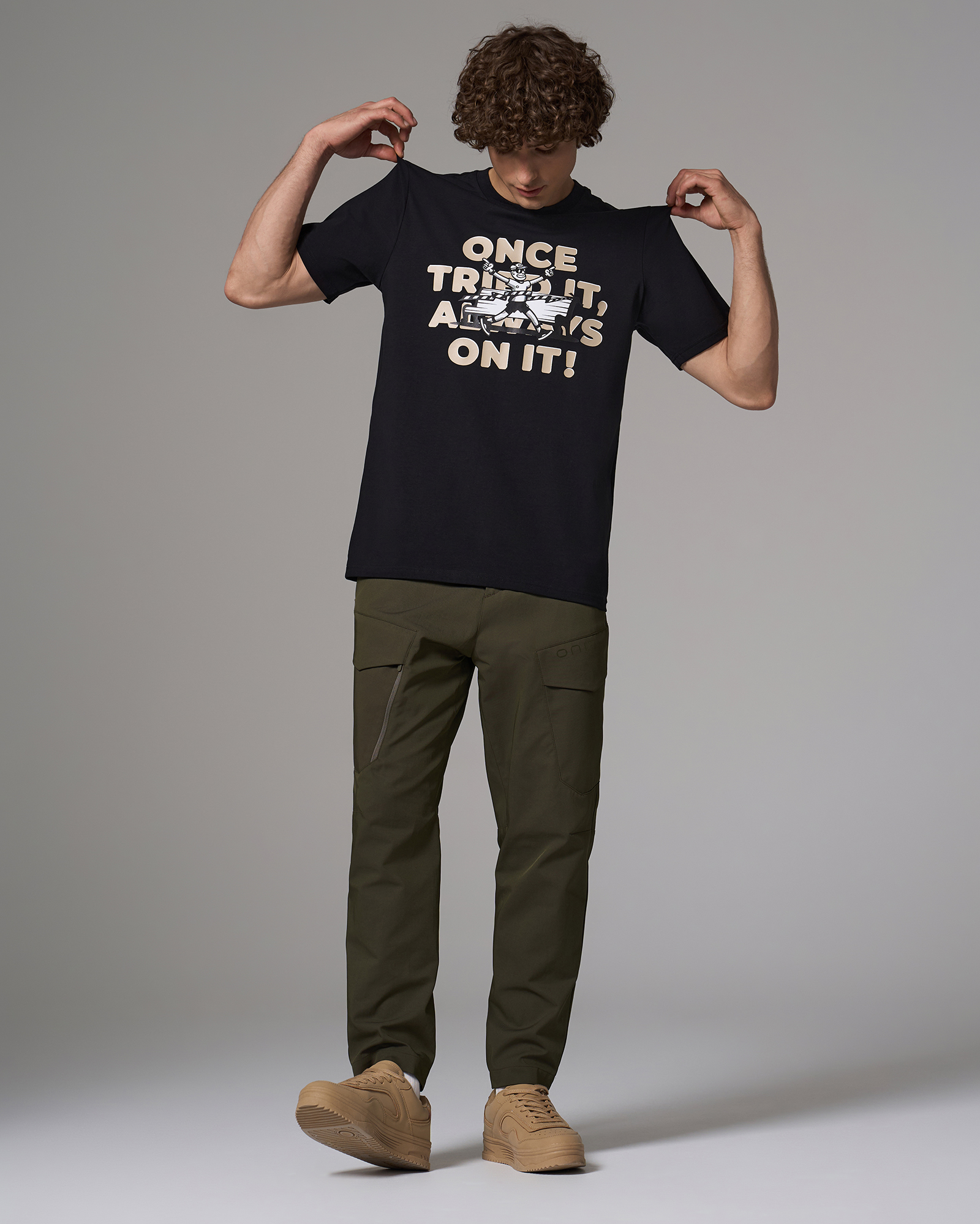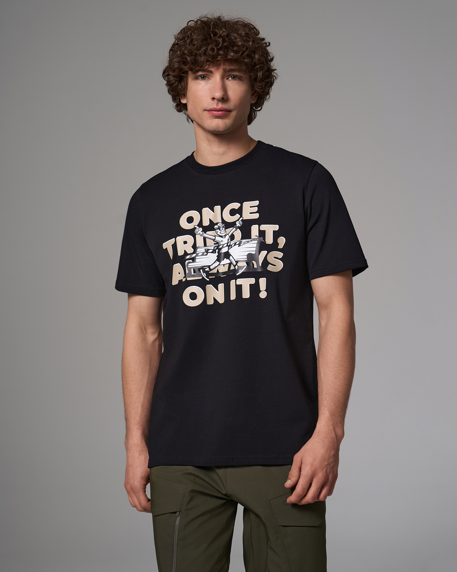ОписаниеФутболка прямого кроя из хлопкового материала с технологией on green. На груди расположен крупный принт с надписью. Модель сохраняет форму после стирок, приятна к телу и подходит для повседневной носки и восстановления.