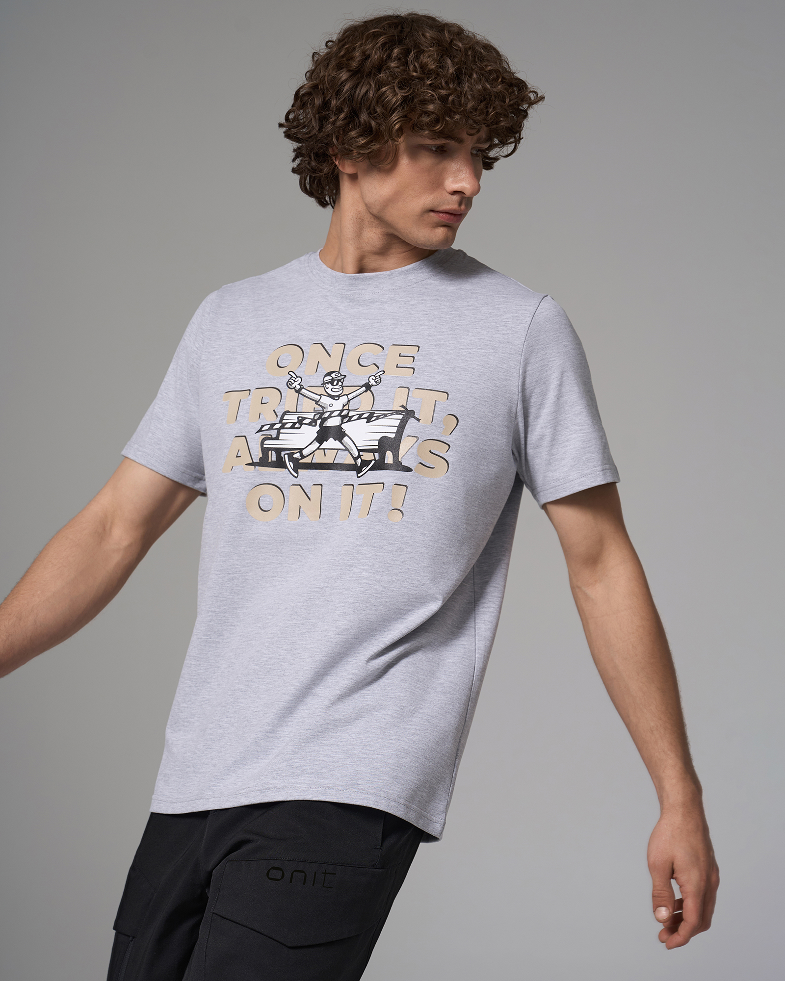 ОписаниеФутболка прямого кроя из хлопкового материала с технологией on green. На груди расположен крупный принт с надписью. Модель сохраняет форму после стирок, приятна к телу и подходит для повседневной носки и восстановления.