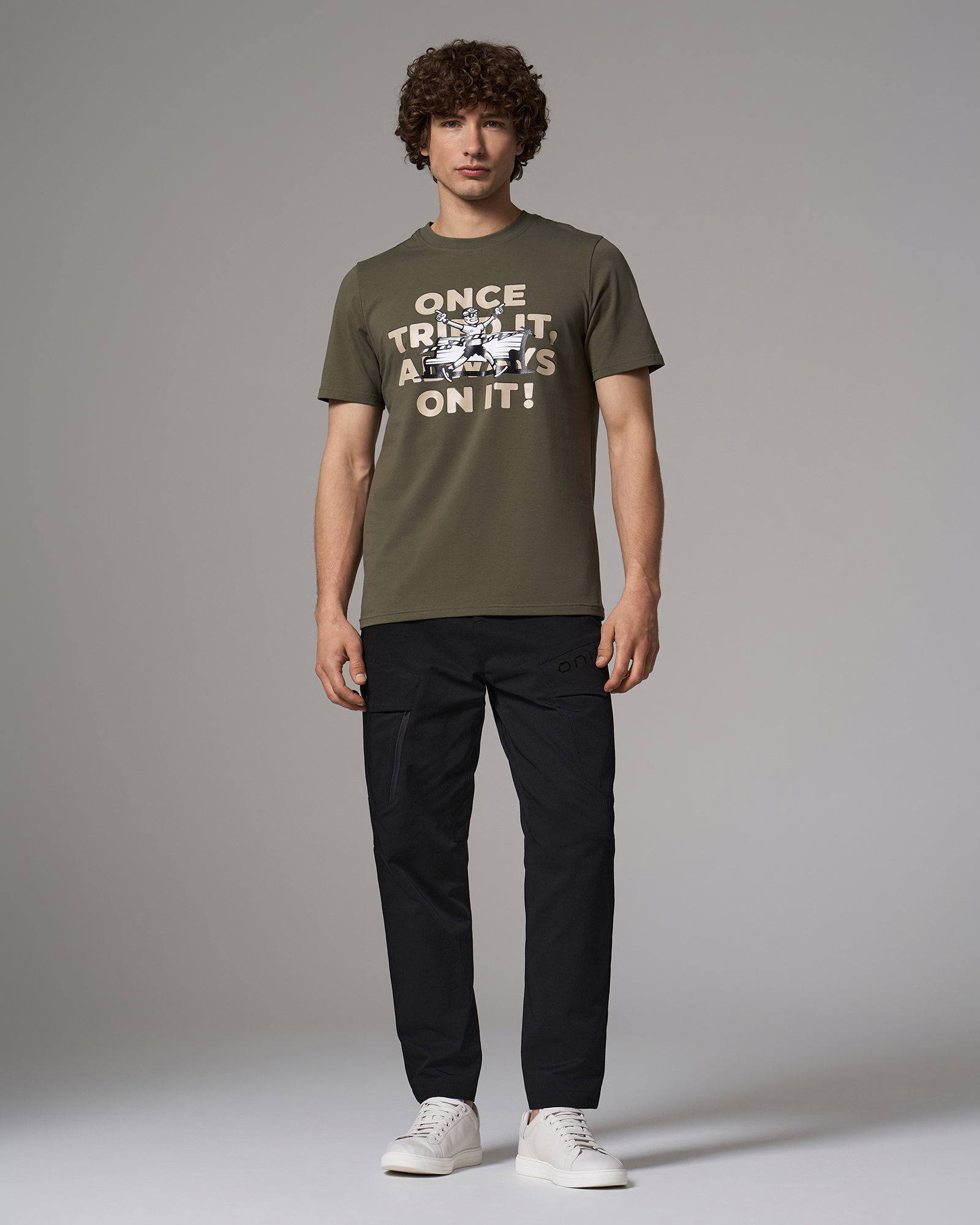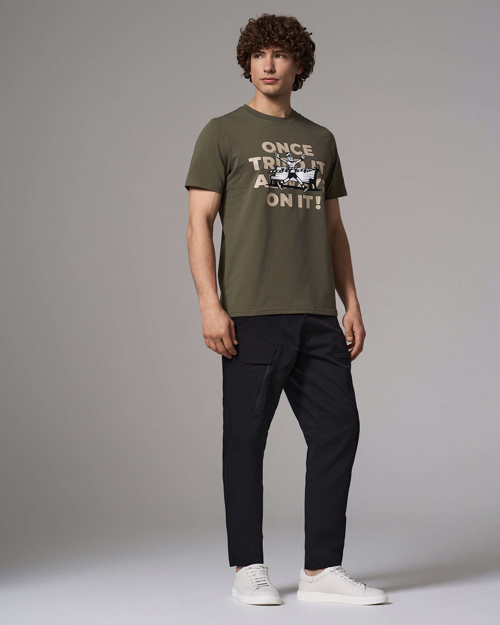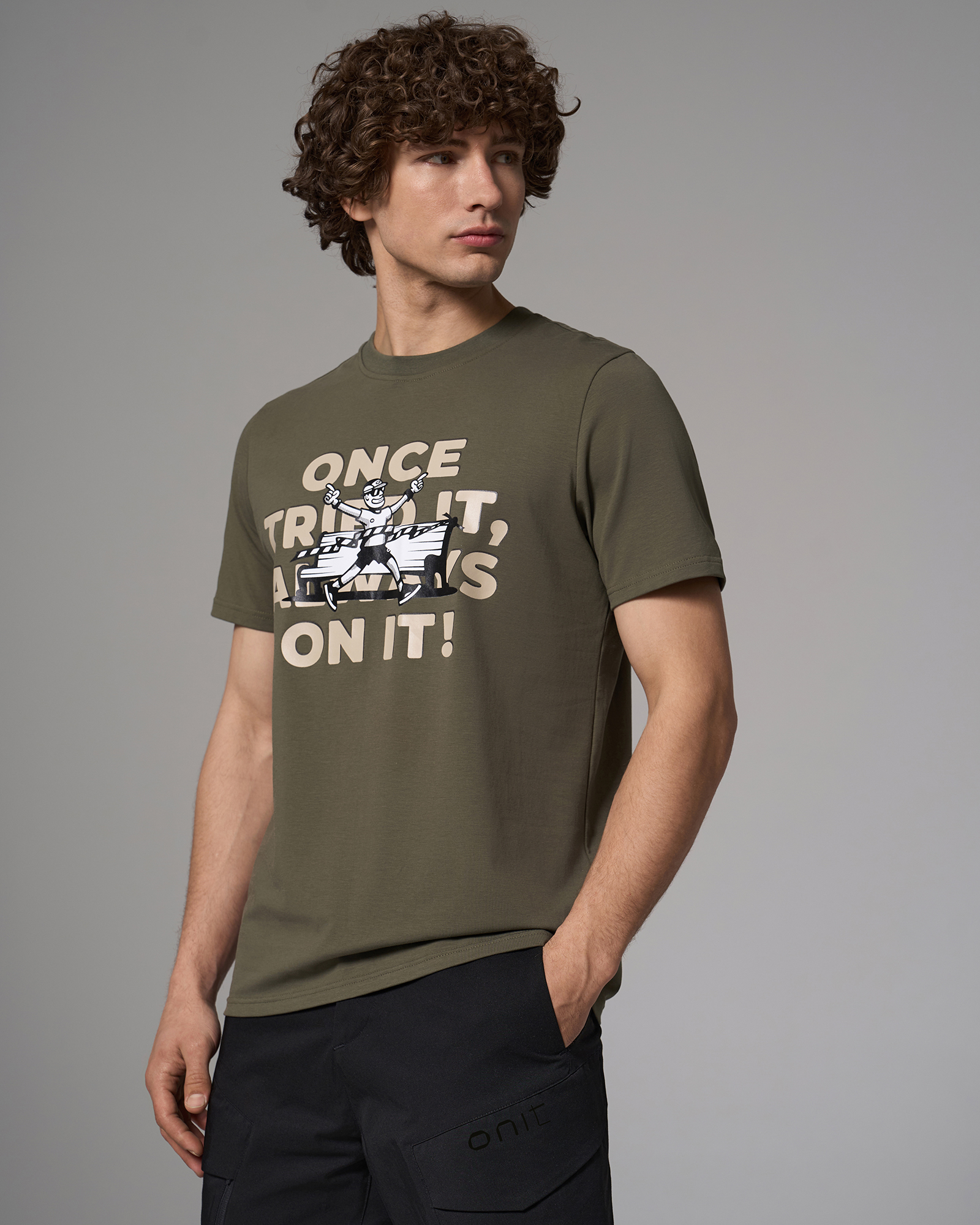 ОписаниеФутболка прямого кроя из хлопкового материала с технологией on green. На груди расположен крупный принт с надписью. Модель сохраняет форму после стирок, приятна к телу и подходит для повседневной носки и восстановления.