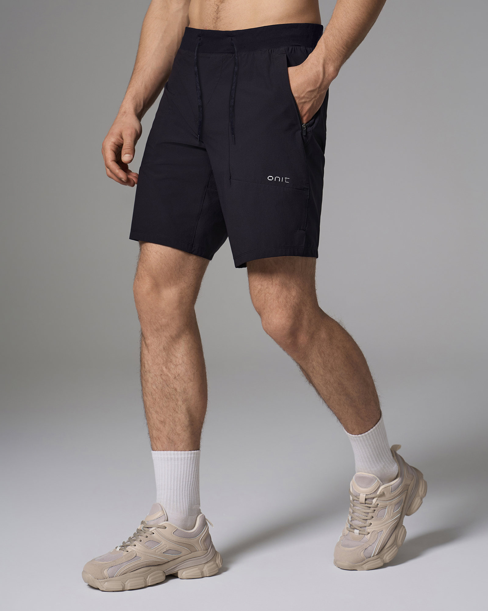 ОписаниеШорты средней посадки длиной 9 дюймов изготовлены из эластичного материала с технологией on dry. Модель отличается удлинённым кроем и быстро сохнущей тканью, не сковывает движений. Спереди два кармана с молниями.