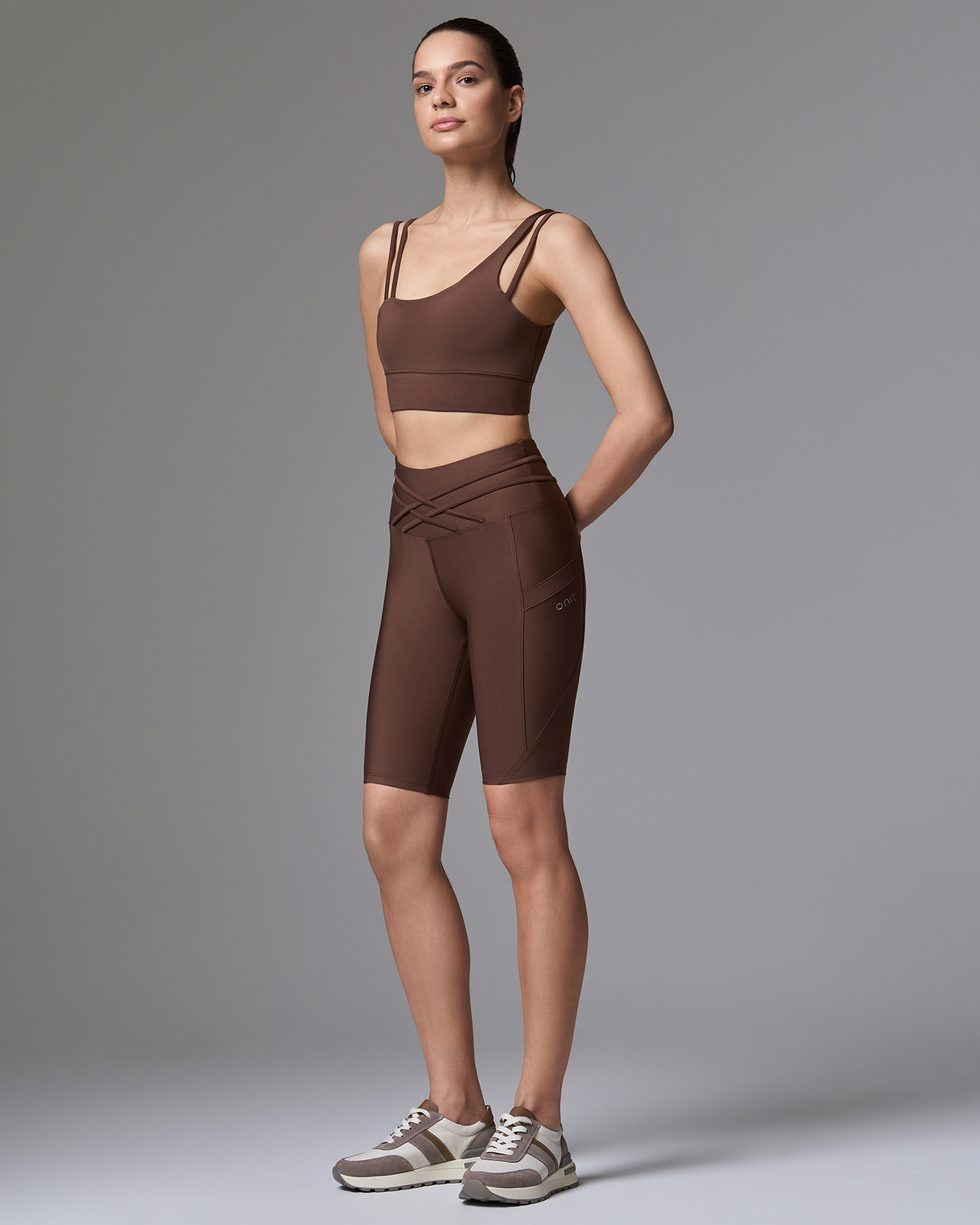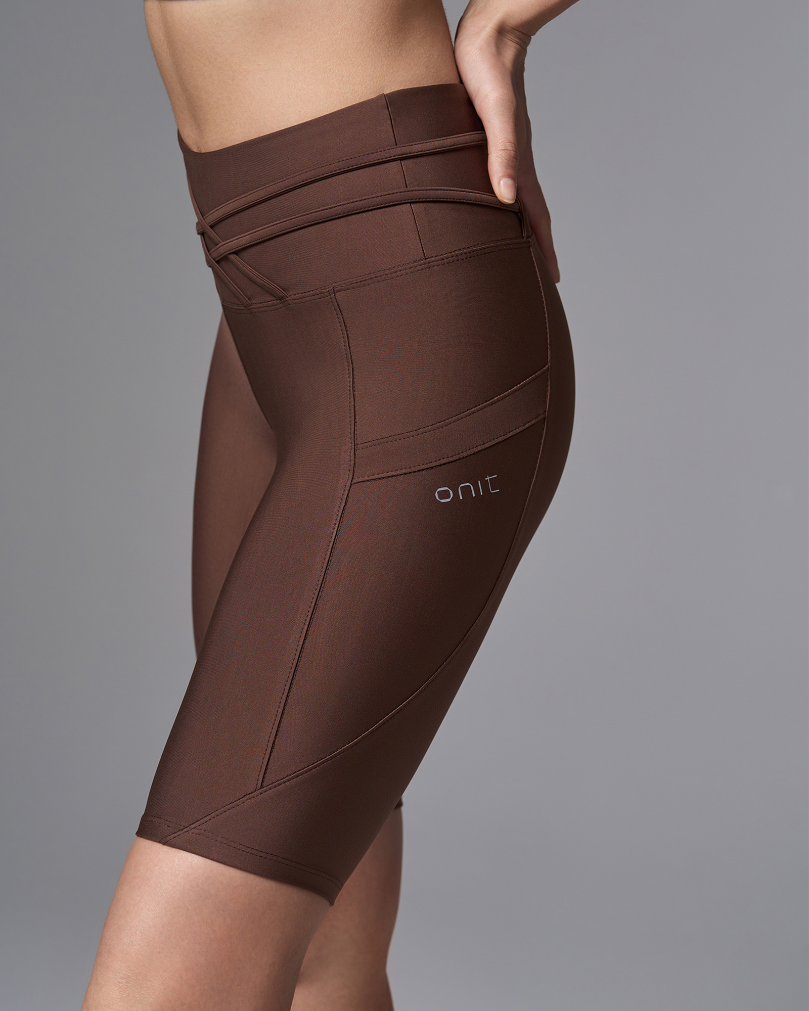 ОписаниеВелосипедки длиной 5 дюймов выполнены из эластичной ткани с технологией on fitform. Модель с высокой посадкой, декоративными перекрестными элементами на поясе. Материал хорошо тянется, быстро сохнет и сохраняет форму. Изделие подходит для фитнеса, йоги и пилатеса.